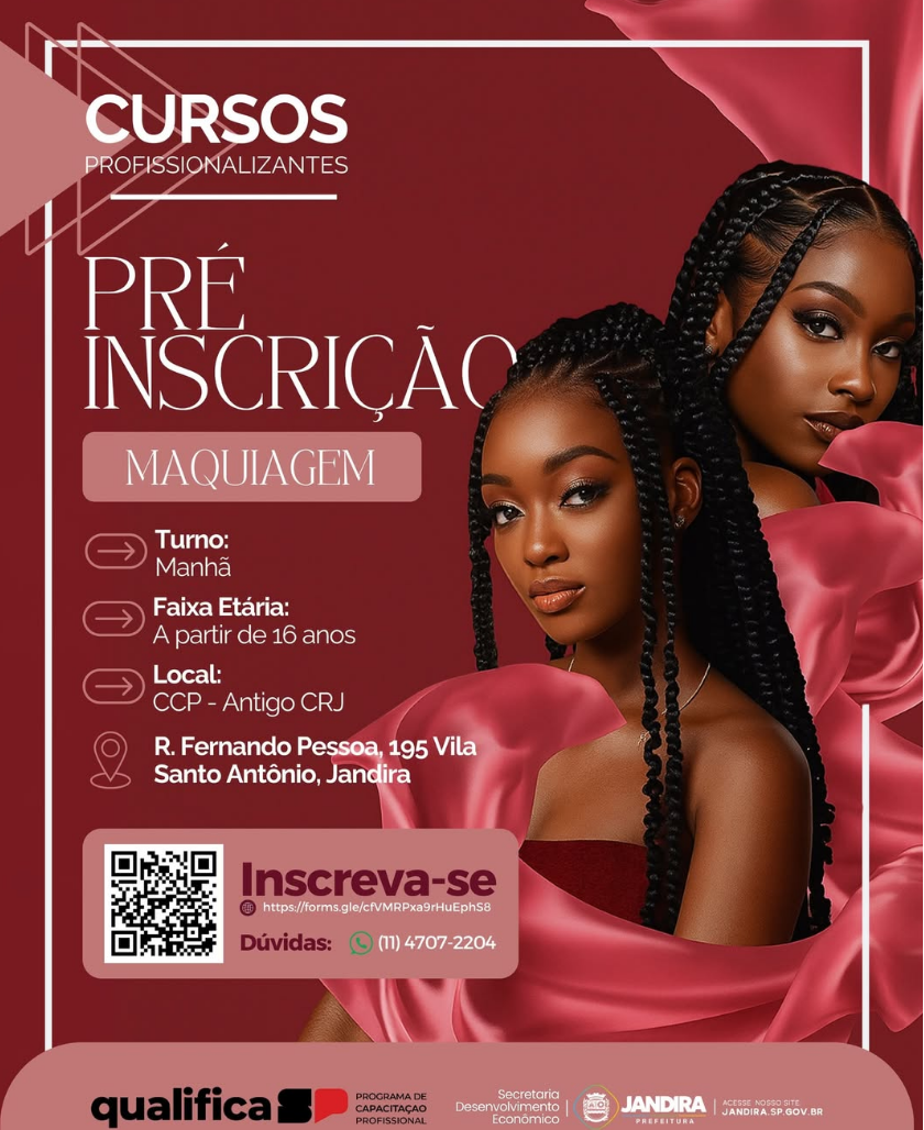Pré-inscrições abertas para o Curso Profissionalizante de Maquiagem em Jandira! Curso Gratuito promovido pelo Desenvolve…